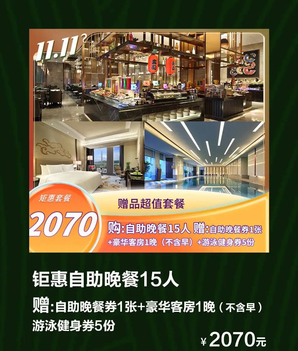11.11悦享游越精彩|西宁富力万达文华酒店历史低价,超值福利