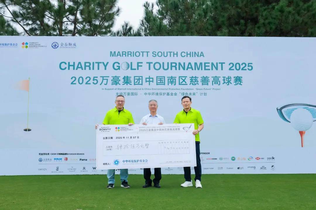 比赛开场仪式上,万豪国际集团代表向中华环境保护基金会代表递交了慈善赛善款支票。万豪集团中国南区商务委员会通过在清远狮子湖乡村俱乐部举办的本届慈善高尔夫球赛,成功募集了人民币45万元。所募集的净收益善款将全部捐赠给万豪国际集团2025年的慈善合作伙伴——中华环境保护基金会,专项用于支持其在中国范围内的生态保护、环境教育及绿色可持续发展项目,为守护中国的绿水青山注入新的动力。