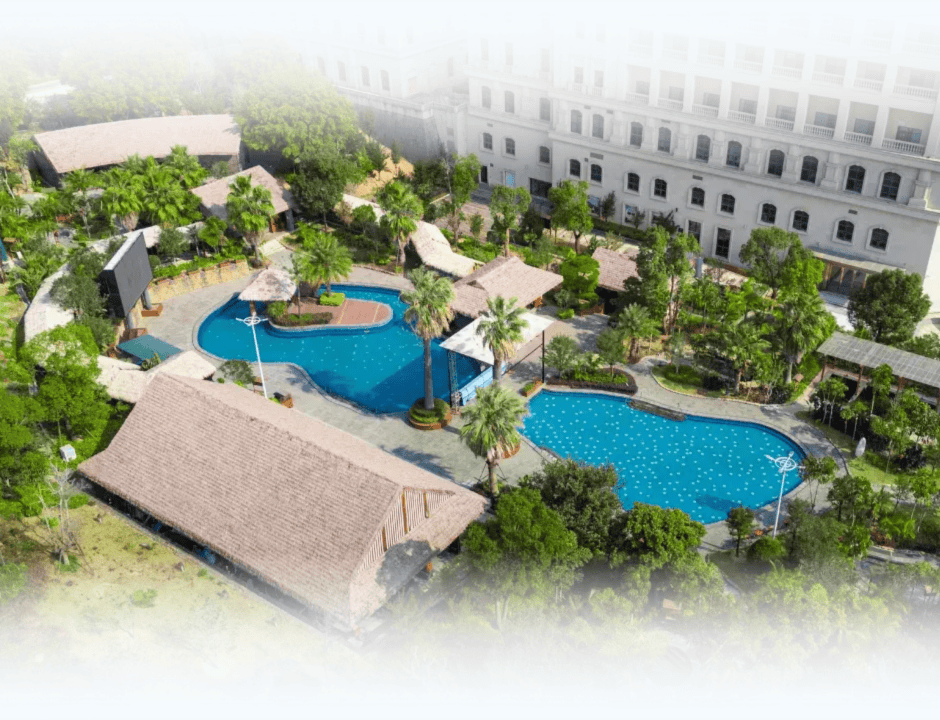 永鸿温泉度假酒店隐于葱郁山林之间,依山势而建,自然景观与东南亚风格建筑相映成趣,仿佛一处避世的桃源。