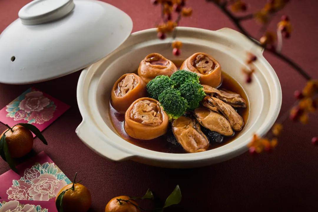 年味不仅在盘中,更在仪式里。唐阁特别呈献“开盖迎福”互动环节:主厨将亲临席间,邀请宾客共同揭开招牌菜品“发财金蚝扣猪手四点金”上的祝福腰封,寓意“食来财聚,马到成功”。伴随着菜品蒸腾的香气,新春福气也流转于欢声笑语之间,融入团圆的温暖氛围。
