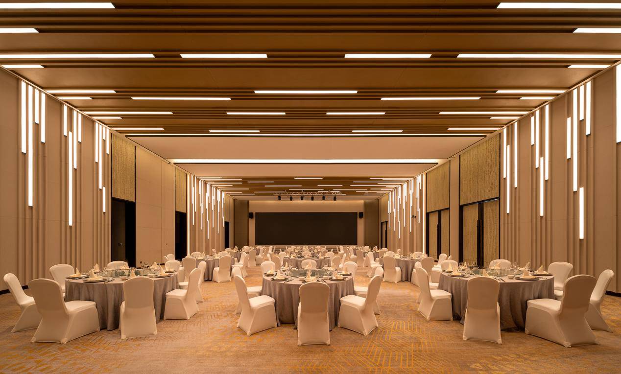月上海棠大宴会厅位于酒店1层,拥有440㎡,层高7米的无柱式宴会厅,带有“月涌薄烟花点水”的意境,配备先进影音视听设备,我们专业的会务策划家和创意执行家致力于为宾客量身打造工作与娱乐平衡的会务体验。