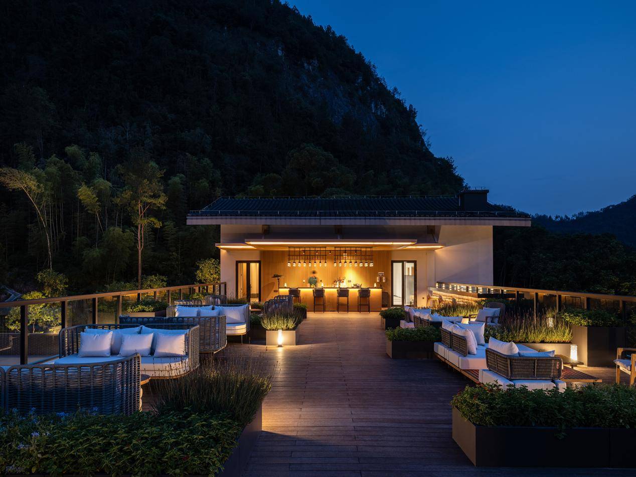 酒店设计汲取东方禅意中的“留白”与“呼吸感”,以素雅线条、通透落地玻璃,将山光、水色、晨雾与夕照纳入室内空间。依山而建,得隐逸之格局;临溪而居,获灵动之生机。185间客房及套房均配备全景落地窗与私人阳台,让您随时沉浸于仙居的四季画卷。