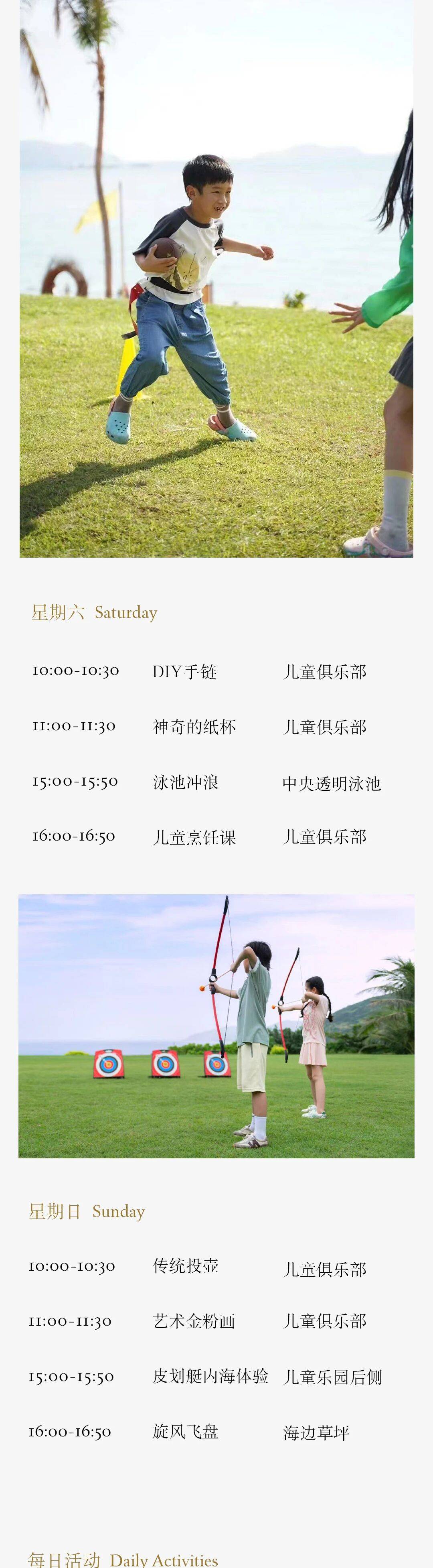详情请关注三亚亚龙湾瑞吉度假酒店官方公众号或致电前台咨询。