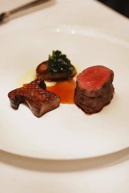 主菜 | 罗西尼牛排配牛肝菌,红酒汁或香草烤羊柳配茄子,干葱,风干番茄