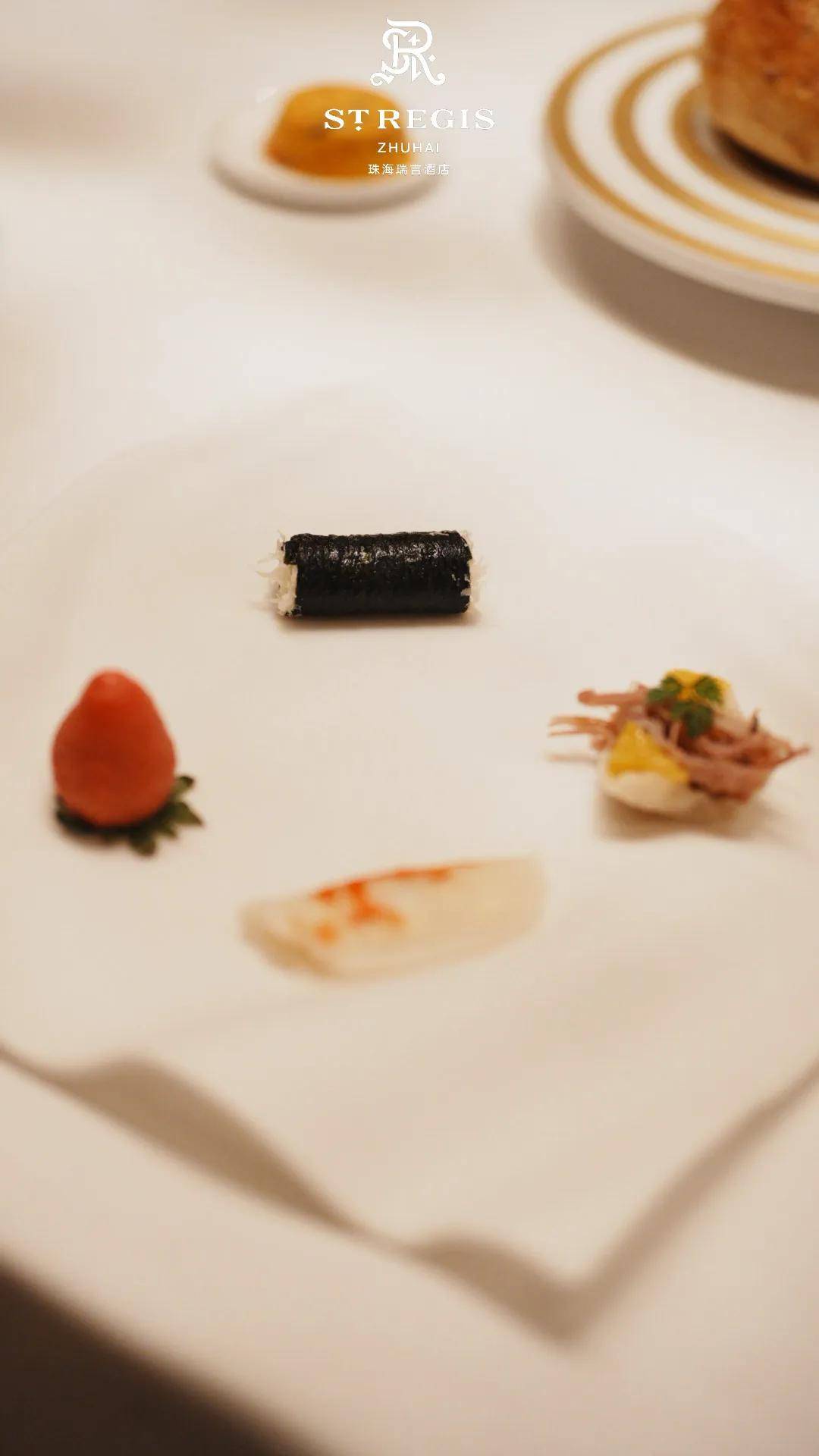 餐前欢迎小食 | 田园“番茄、海苔脆卷、手工“虾饺“、鸭肉塔塔