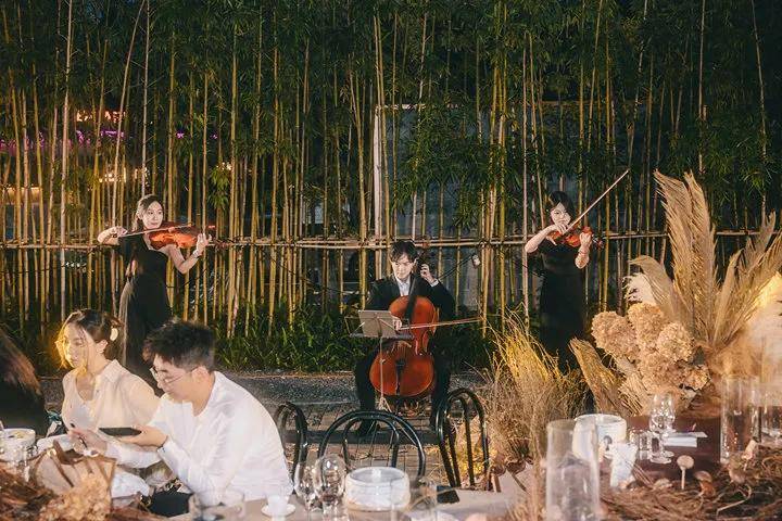 本次秋韵臻选音乐会晚宴选择了一楼户外场地开辟新的宴会场地,同时现场空运了外地黄色落叶让到场的宾客提前秋季独特韵味,踩在落叶上感受到与自然相联系。晚宴菜单选用小南洋中餐厅秋季新品,为宾客带来创新川菜的招牌风味及时令食材的醇厚本味。