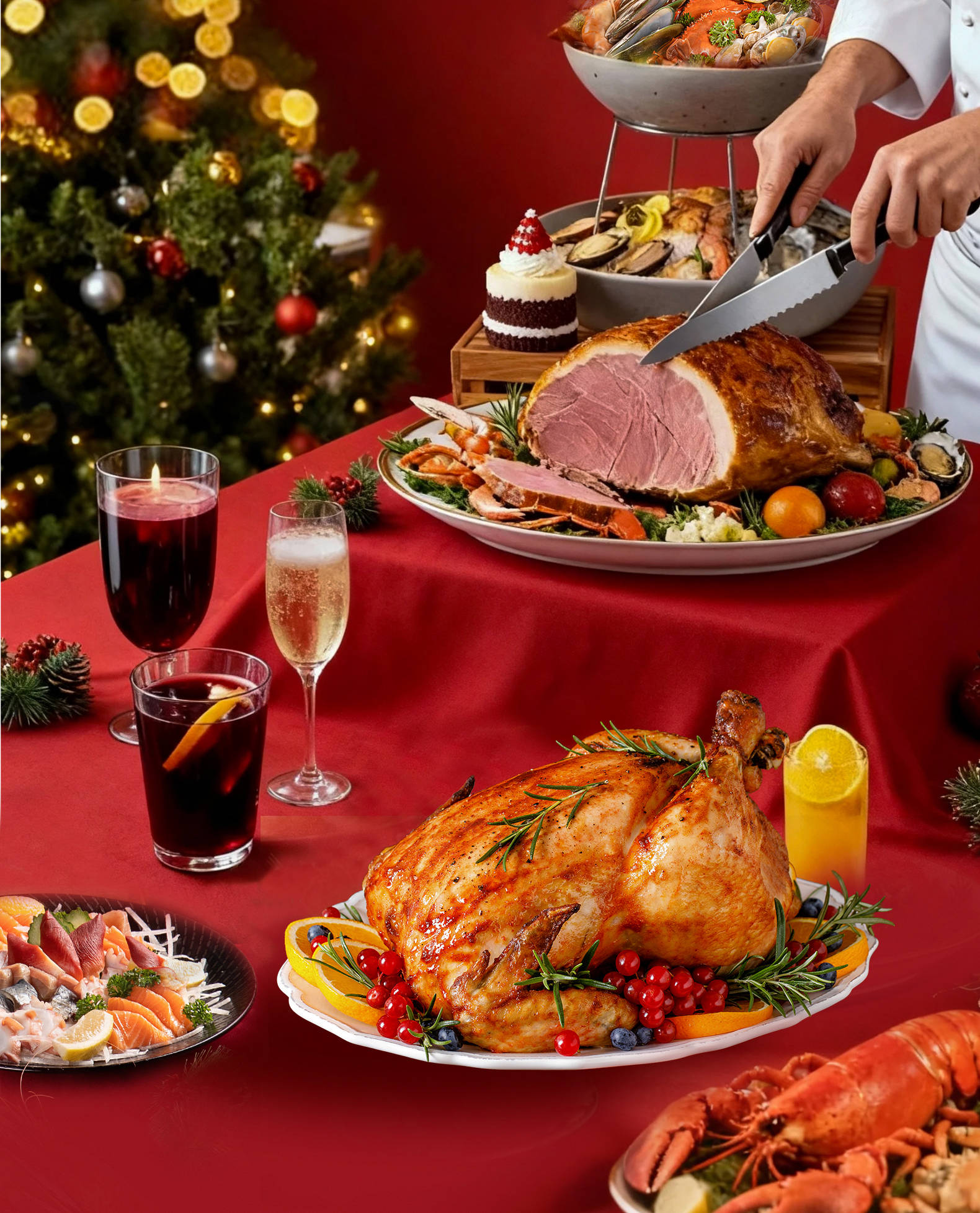 - 圣诞主题甜品秀 | 圣诞烤火鸡、火腿、烤肉与面包卷,满载仪式感